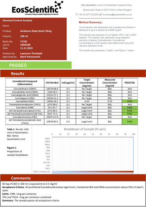 Stimulate your senses with Ambience’s premium cannabidiol-enriched body wash. Delivers premium CBD in a great smelling formula, that’s seriously easy to use. Water gets more refreshing with the Ambience CBD-enriched body wash. Packed with premium CBD, from natural hemp extract, this shower gel will energize your mornings, hydrate your skin and recharge your sense of well-being.