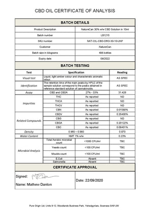 Naturecan's 30% CBD Oil is broad-spectrum cannabidiol (CBD) combined with pure organic MCT carrier oil – and absolutely zero THC content.