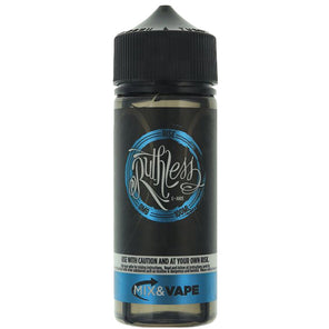 The Ruthless eliquid range comes bottled into a 120ml capacity chubby gorilla bottle and contains 100ml of 0mg nicotine e-liquid. That leaves a 10ml empty space for adding a nic shot of your desired strength. Adding 2x 18mg Nicotine shot will result in 120ml of 3mg strength vaping e-liquid.