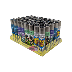 - 40 Lighters per pack - Clipper Large Refillable Lighters- 4 Assorted Designs- Preset Flame - Gas Lighter